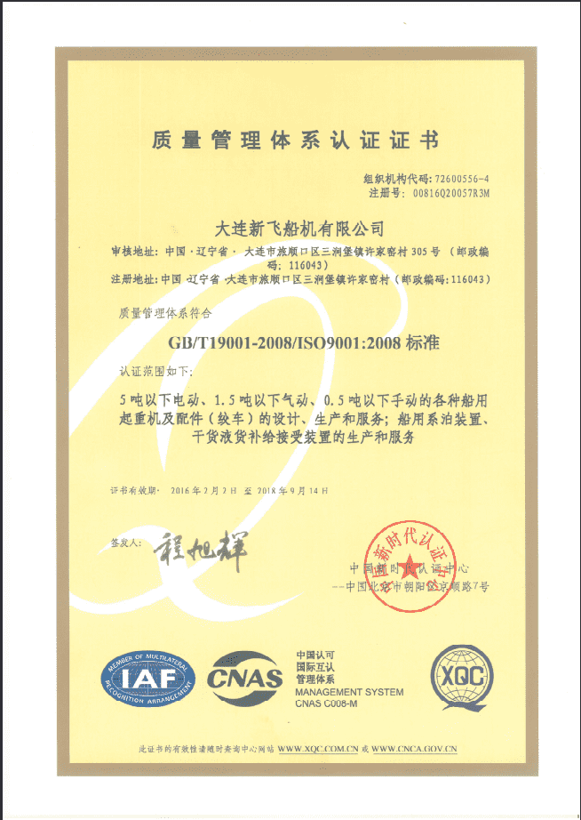 ISO9001:2008體系證書